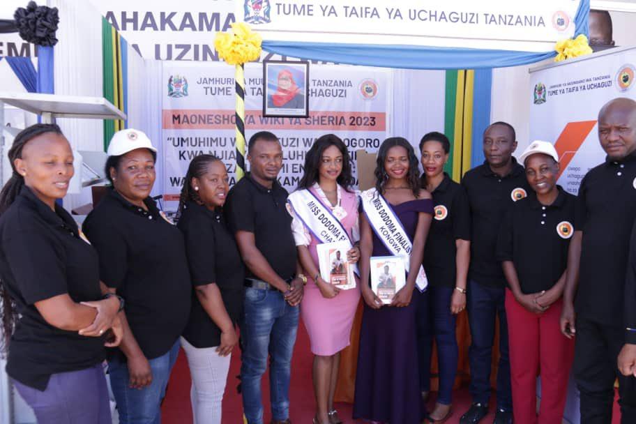 Beauties participating in the Miss TAKUKURU Dodoma 2023 competition at the National Electoral Commission Pavilion when they visited the Law Week exhibition today January 29, 2023 at Nyerere Square in Dodoma.