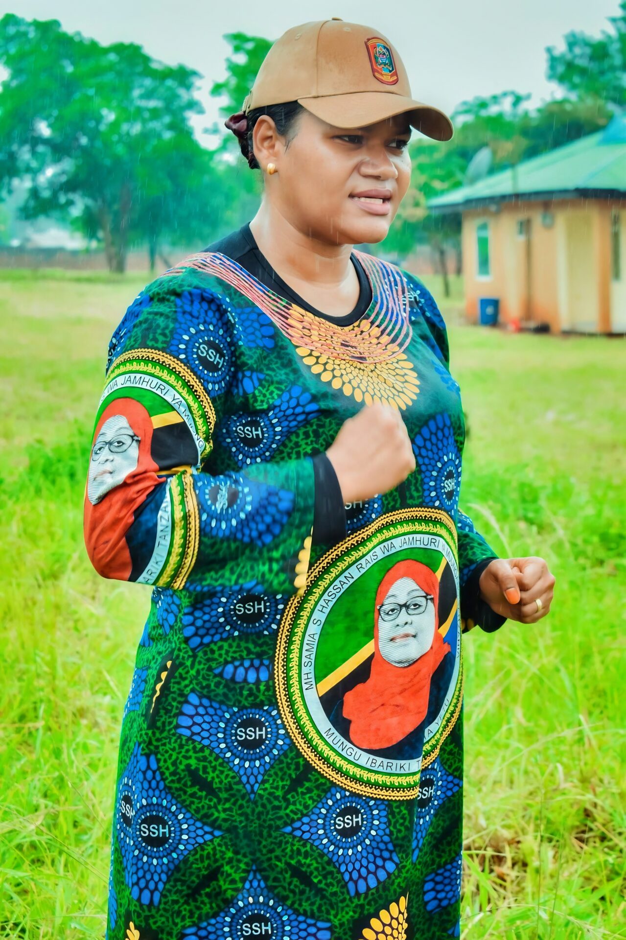 The President of the United Republic of Tanzania Hon. Samia Suluhu Hassan greeting Famous Residents of Arumeru Timoth Palangyo and Shedrack Palangyo immediately after addressing the Citizens of Usa River, Arumeru in Arusha Region.
